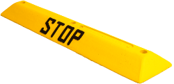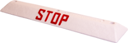 Separator parkingowy z wypukłym napisem STOP.