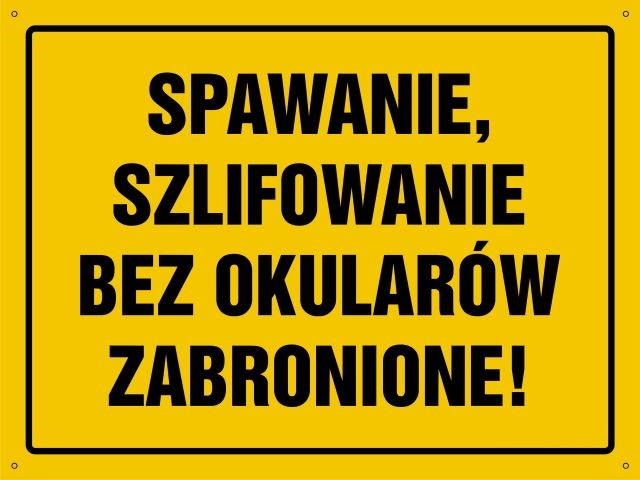 Strona główna » Spawanie, szlifowanie bez okularów zabronione ! - tablica budowlana