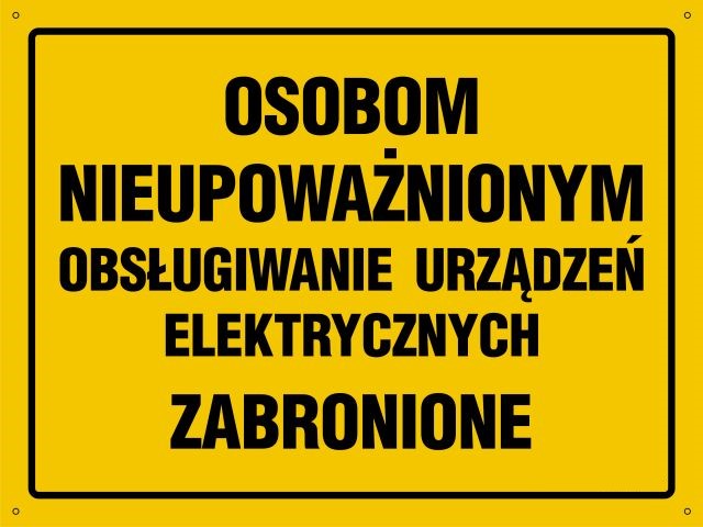Osobom nieupoważnionym obsługiwanie urządzeń elektrycznych zabronione - tablica budowlana