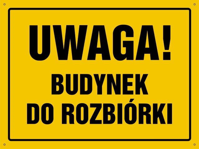 UWAGA ! Budynek do rozbiórki - tablica budowlana