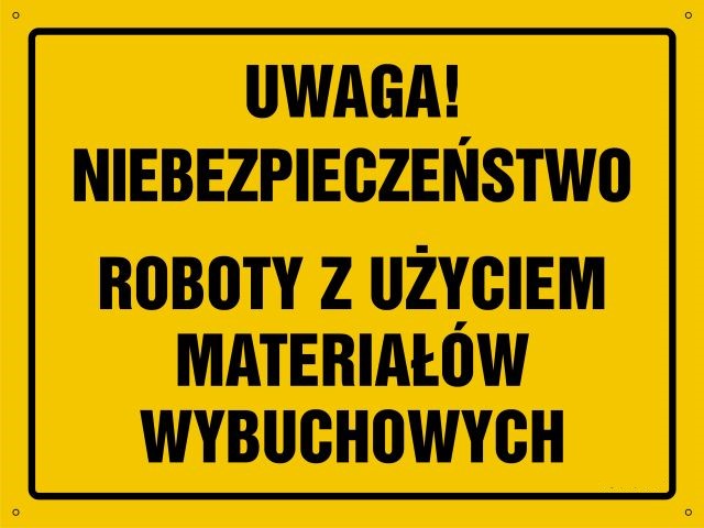 Strona główna » UWAGA ! Niebezpieczeństwo, roboty z użyciem materiałów wybuchowych - tablica budowlana