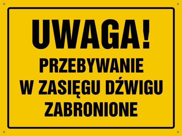 Strona główna » UWAGA ! Przebywanie w zasięgu dźwigu zabronione - tablica budowlana
