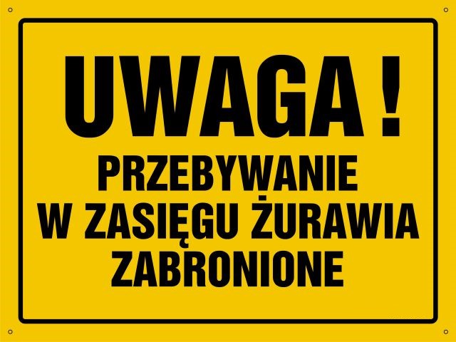 Strona główna » UWAGA ! Przebywanie w zasięgu żurawia zabronione - tablica budowlana