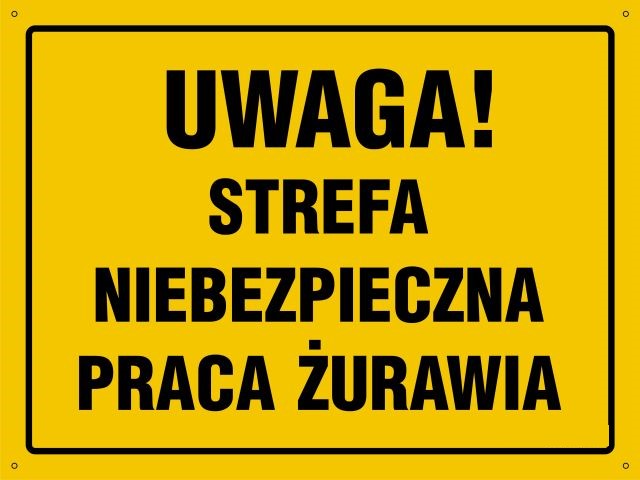Strona główna » UWAGA ! Strefa niebezpieczna, praca żurawia - tablica budowlana