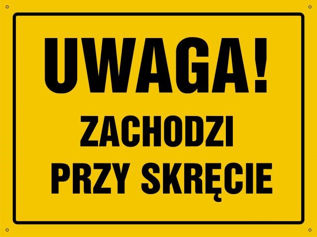 Strona główna » UWAGA ! Zachodzi przy skręcie - tablica budowlana