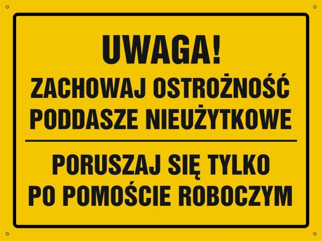 Strona główna » UWAGA ! Zachowaj ostrożność, poddasze nieużytkowe - tablica budowlana