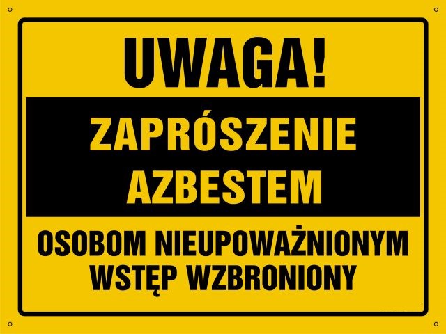 Strona główna » UWAGA ! Zaprószenie azbestem - tablica budowlana