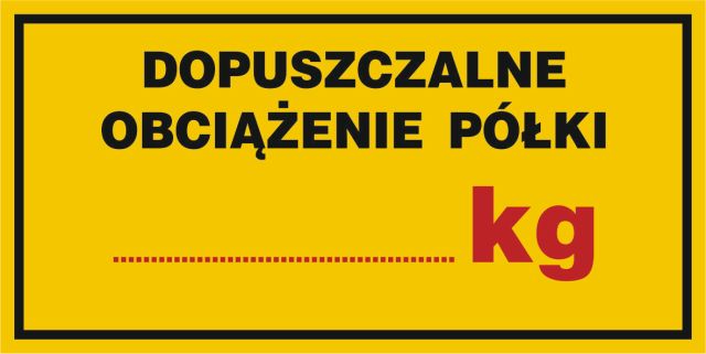 Znak Dopuszczalne obciążenie półki ....... kg