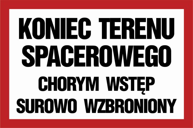 Znak Koniec terenu spacerowego chorym wstęp surowo wzbroniony