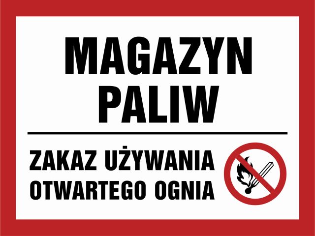 Znak Magazyn paliw. Zakaz używania otwartego ognia