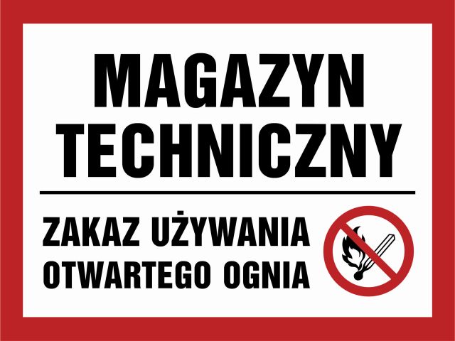 Znak Magazyn techniczny. Zakaz używania otwartego ognia