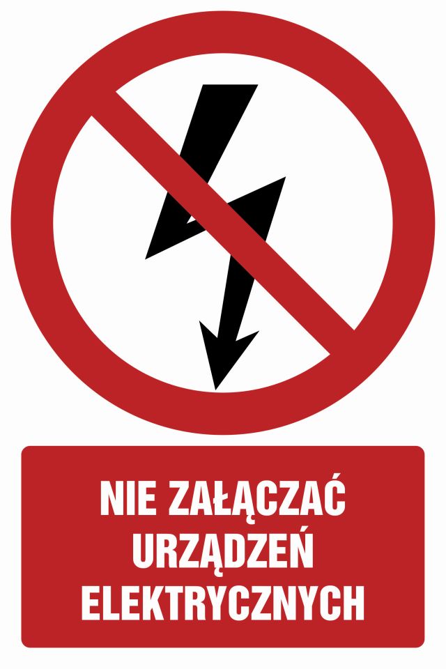 Znak Nie załączać urządzeń elektrycznych