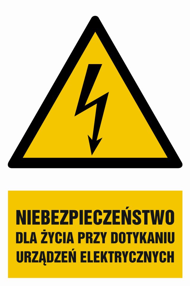 Znak Niebezpieczeństwo dla życia przy dotykaniu urządzeń elektrycznych