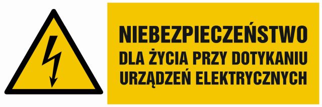 Znak Niebezpieczeństwo dla życia przy dotykaniu urządzeń elektrycznych