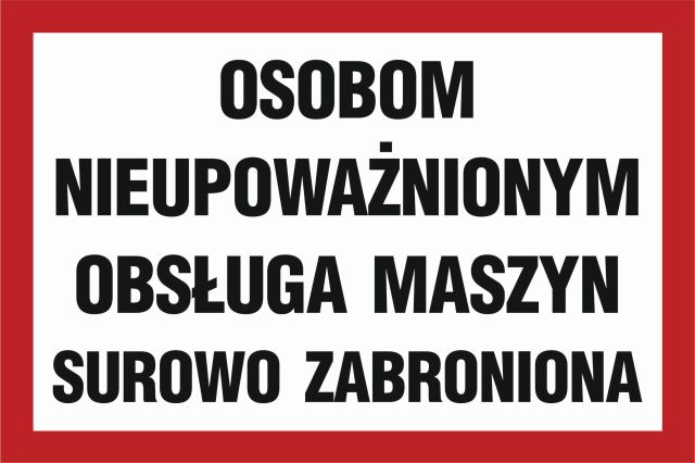 Strona główna » Znak Osobom nieupoważnionym obsługa maszyn surowo zabroniona płyta sztywna PCV ND024