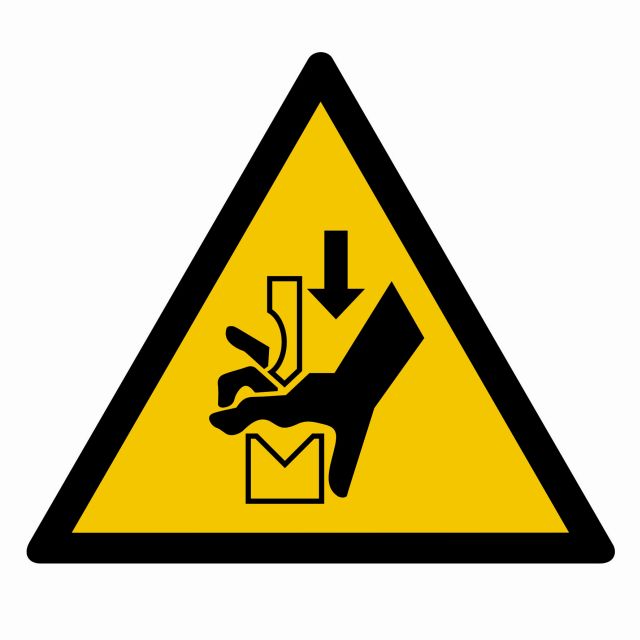 Znak Ostrzeżenie przed zgnieceniem dłoni między prasą i stopą
