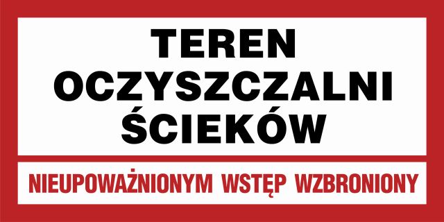 Znak Teren oczyszczalni ścieków. Nieupoważnionym wstęp wzbroniony