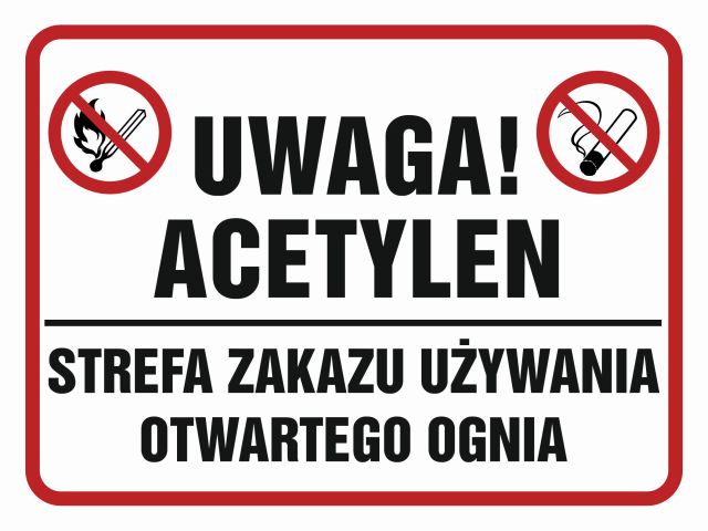 Znak Uwaga acetylen! Strefa zakazu używania otwartego ognia