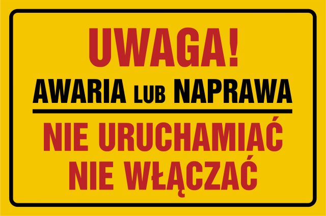 Znak Uwaga! Awaria lub naprawa. Nie uruchamiać