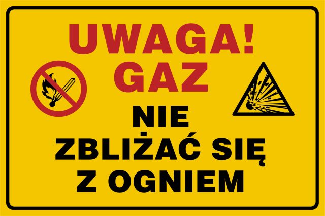 Znak Uwaga! Gaz. Nie zbliżać się z ogniem