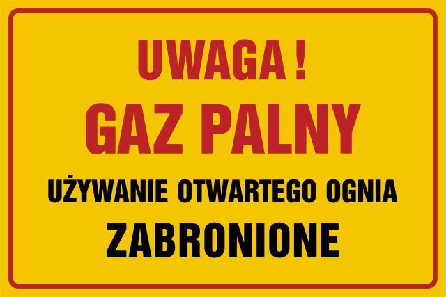Znak Uwaga! Gaz palny. Używanie otwartego ognia zabronione