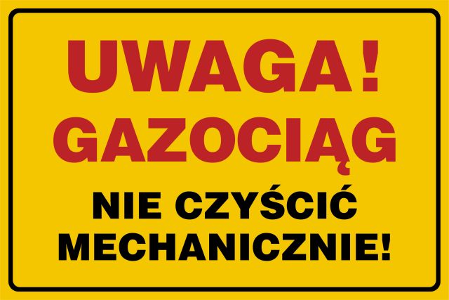 Znak Uwaga gazociąg nie czyścić mechanicznie
