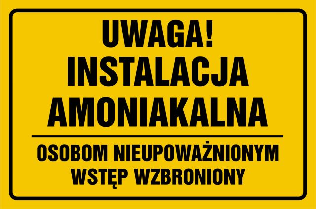 Znak Uwaga instalacja amoniakalna osobom nieupoważnionym wstęp wzbroniony