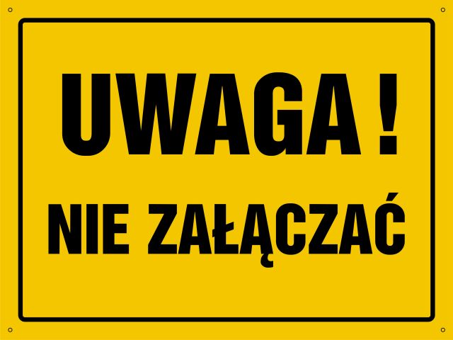 Znak Uwaga! Nie załączać płyta sztywna PCV OA157