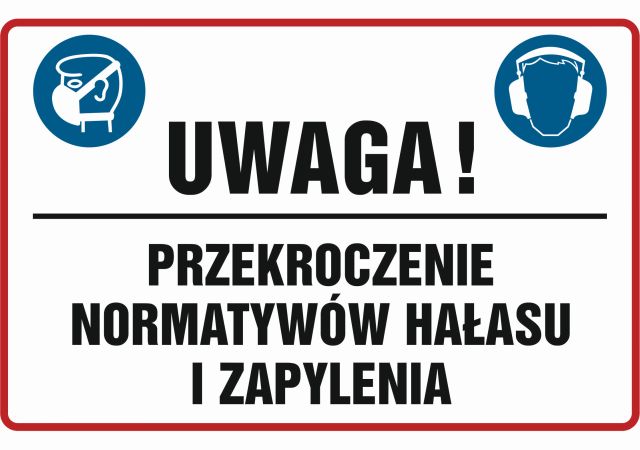 Znak Uwaga ! Przekroczenie normatywów hałasu i zapylenia