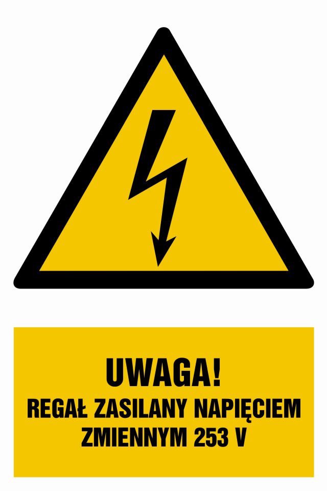 Znak Uwaga regał zasilany napięciem zmiennym 253 V