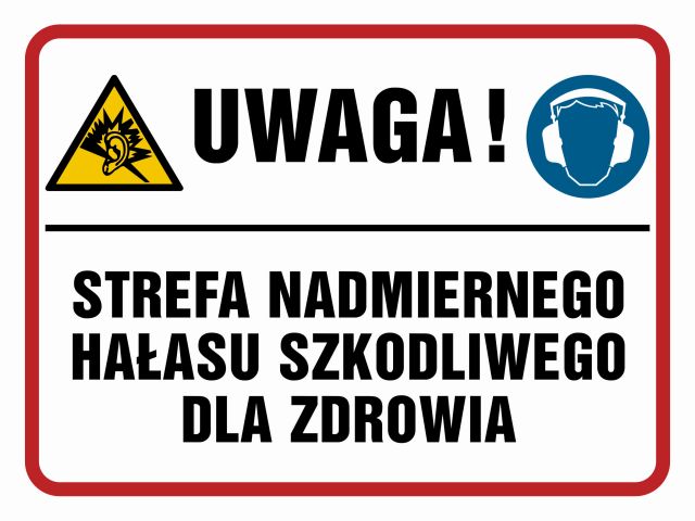 Znak Uwaga! Strefa nadmiernego hałasu szkodliwego dla zdrowia
