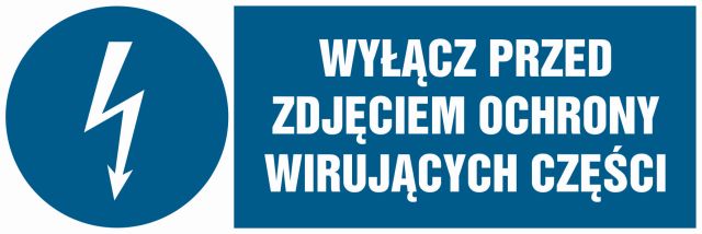 Znak Wyłącz przed zdjęciem ochrony wirujących części