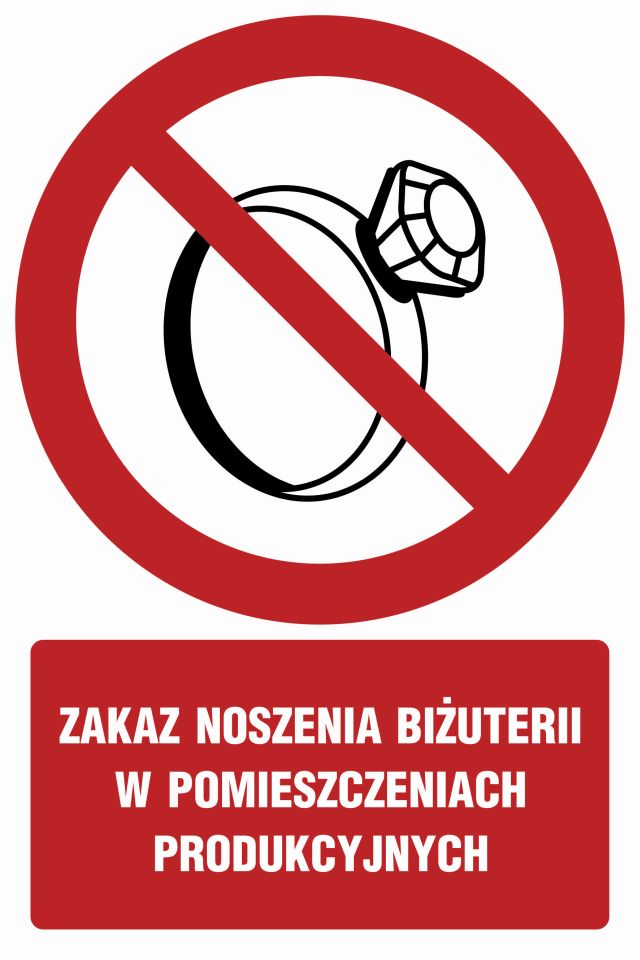 Znak Zakaz noszenia biżuterii w pomieszczeniach produkcyjnych