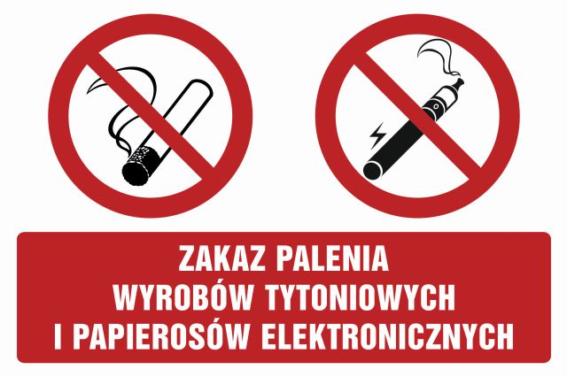 Znak Zakaz palenia wyrobów tytoniowych i papierosów elektronicznych