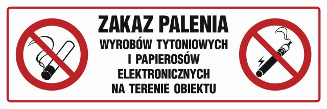 Znak Zakaz palenia wyrobów tytoniowych i papierosów elektronicznych na terenie obiektu