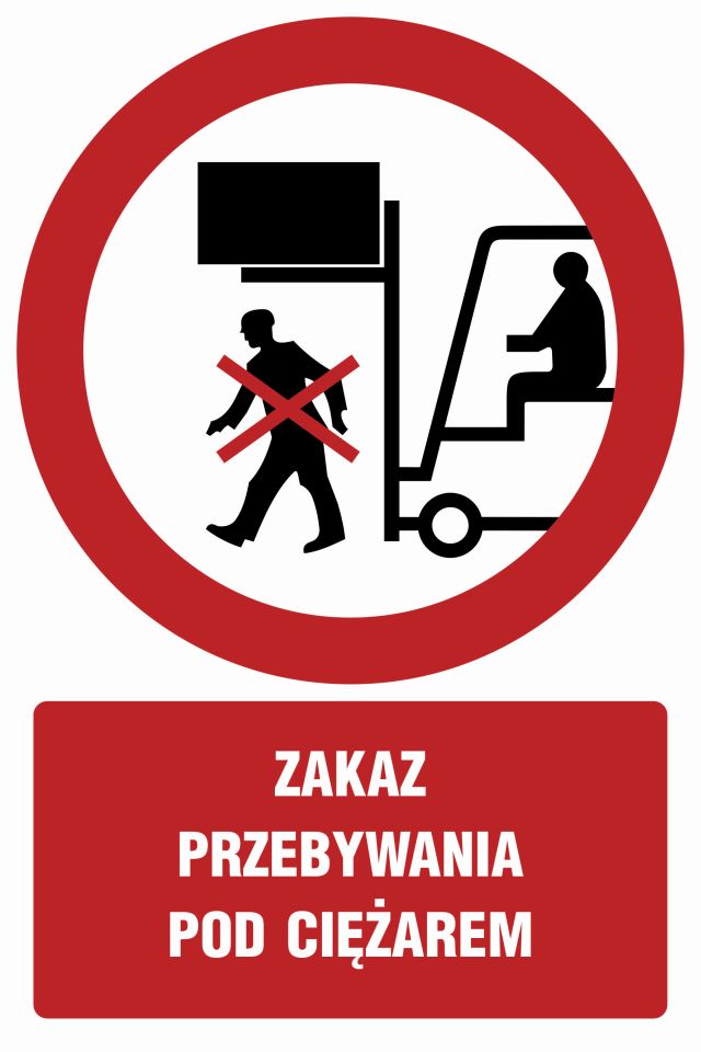 Znak Zakaz przebywania pod ciężarem folia samoprzylepna GC057