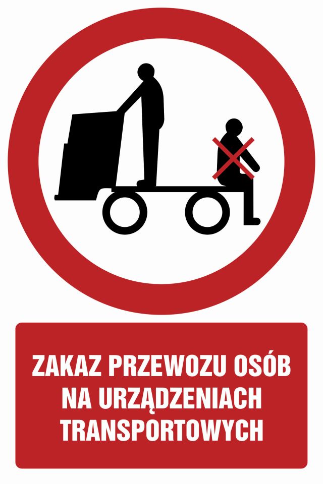 Znak Zakaz przewozu osób na urządzeniach transportowych płyta sztywna PCV GC058