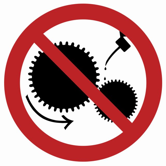 Znak Zakaz smarowania urządzeń w ruchu