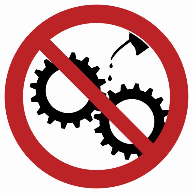 Strona główna » Znak Zakaz smarowania urządzeń w ruchu folia samoprzylepna GB030
