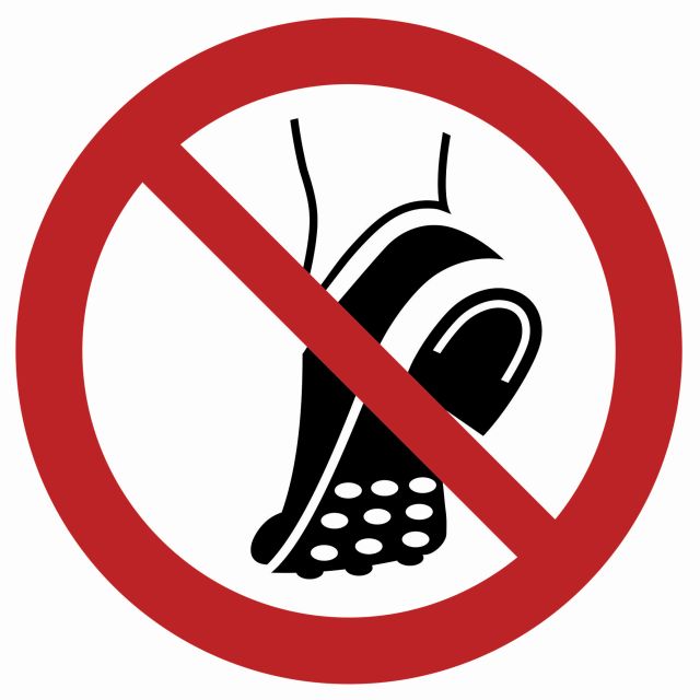 Znak Zakaz wchodzenia w obuwiu z metalowa podeszwą