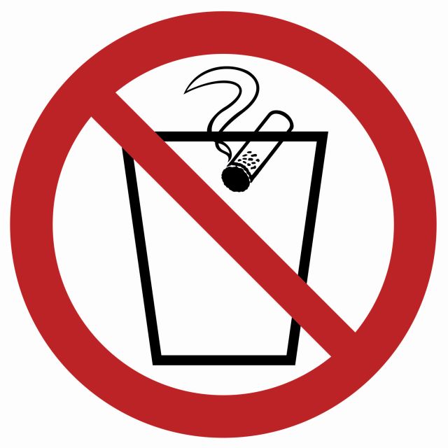 Strona główna » Znak Zakaz wrzucania niedopałków do kosza folia samoprzylepna GB018