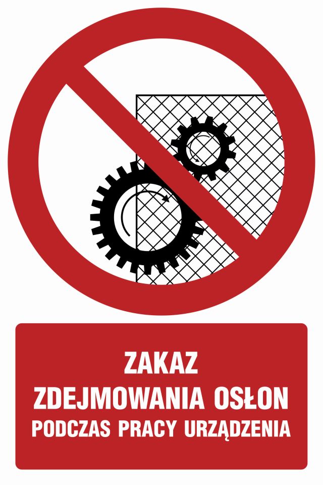Znak Zakaz zdejmowania osłon podczas pracy urządzenia