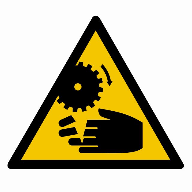 Znak Ostrzeżenie przed możliwością obcięcia palców przez wirujące elementy folia samoprzylepna GE021